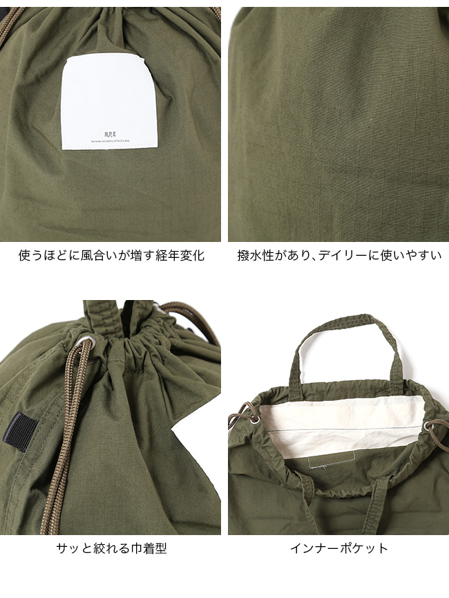 エヌピーイーナプロンペイシェントエフェクトバッグ ミリタリーペイシェントバッグ M N.P.E NAPRON PATIENTS EFFECTS BAG メンズ レディース ユニセックス NPE01-9020M サブバッグ 巾着 トートバッグ フェス おしゃれ キャンプ アウトドア