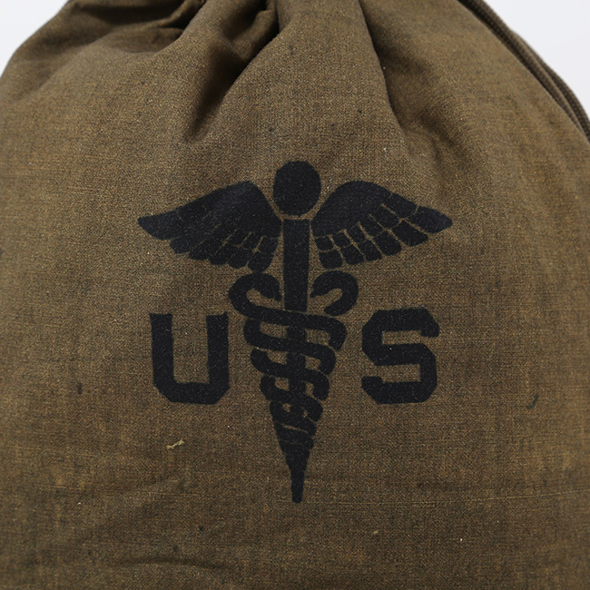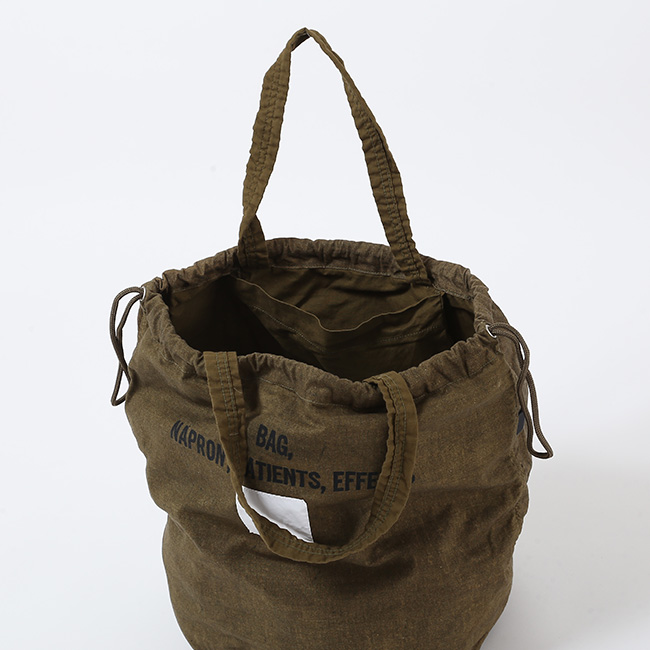 太番手の糸を使って織り上げたミリタリークロスを使用したPATIENTS BAG。身頃部分は2枚仕立ての薄手シーチングで強度を確保し、軽さと丈夫さを両立させました。
