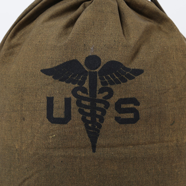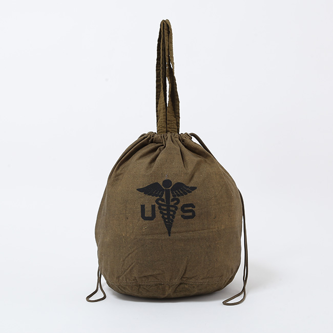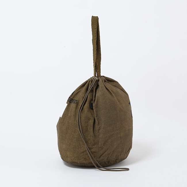 太番手の糸を使って織り上げたミリタリークロスを使用したPATIENTS BAG。身頃部分は2枚仕立ての薄手シーチングで強度を確保し、軽さと丈夫さを両立させました。
