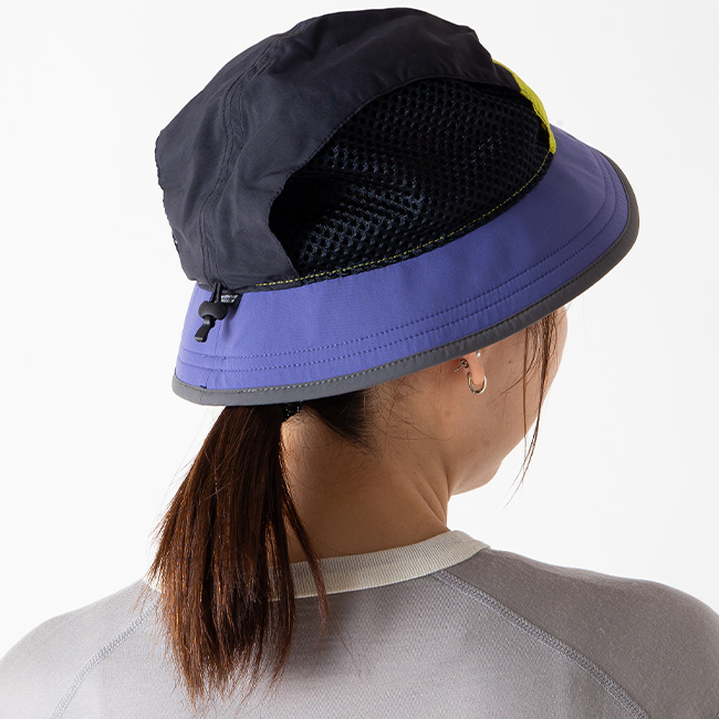 メッシュ・パネルは通気性と換気性に優れ、帽子の後部にあるドローコードでしっかりフィットします。