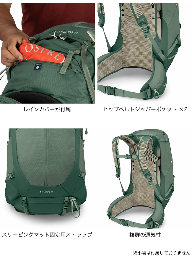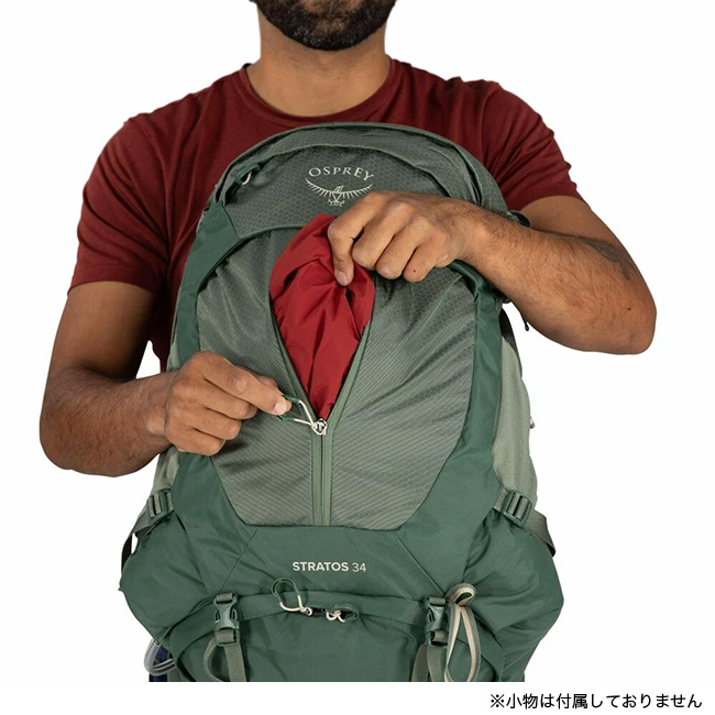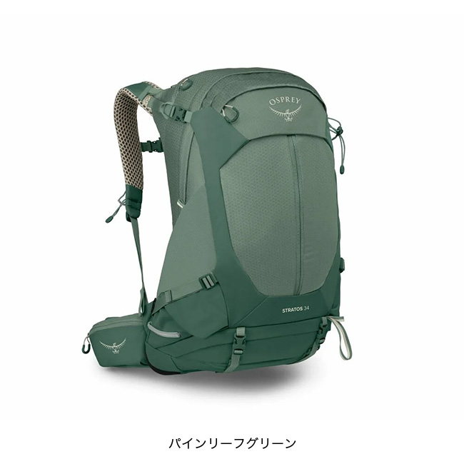 ストラトスはクラシックなデザインに抜群の通気性を融合したハイキングパックの決定版。34はまる1日掛かるデイハイキングまで対応するパネルローダー。