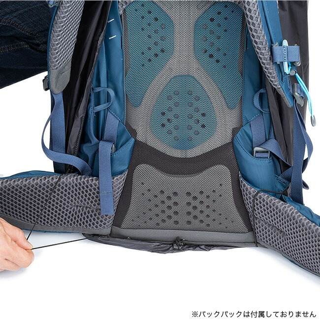 上部のバックルとヒップベルトバンジーコードでしっかりと固定