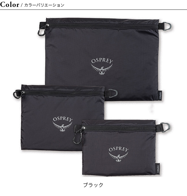 オスプレー ULジッパーサックセット OSPREY ULTRALIGHT ZIP SACK SET OS58838 ポーチ 小物入れ ジップポーチ Dリング付き キャンプ アウトドア