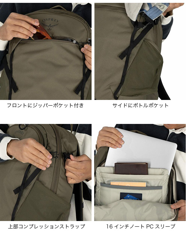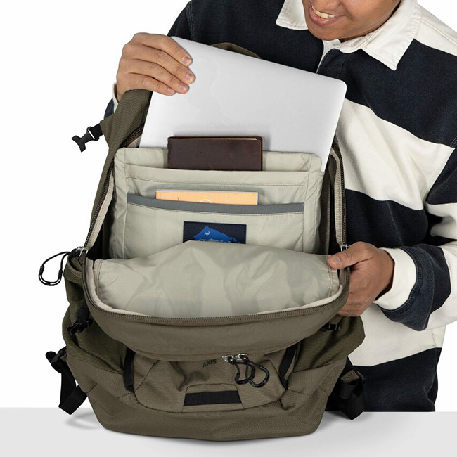 24リットルの容量は、1日に必要なものを持ち運ぶのにぴったりなサイズです。メインの荷室には、16インチノートPCスリーブやタブレットスリーブ、ノートや書類などの収納に便利なスリーブを備えています。