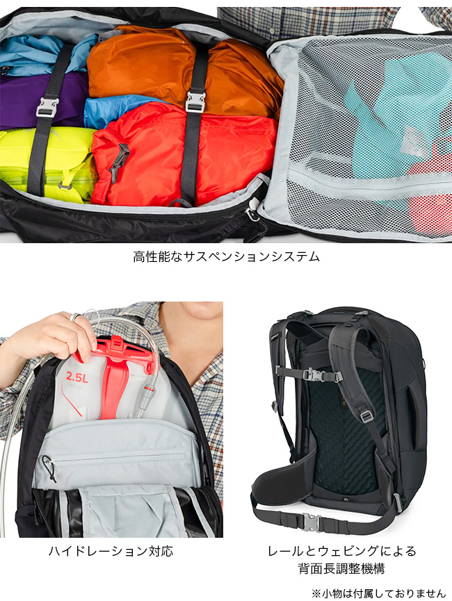 オスプレー フェアビュー55トラベルパック OSPREY FAIRVIEW 55 レディース OS55344 バックパック リュック ザック トレッキングパック 旅行 トラベル キャンプ 登山 トレッキング 着脱式デイパック テクニカル キャンプ アウトドア