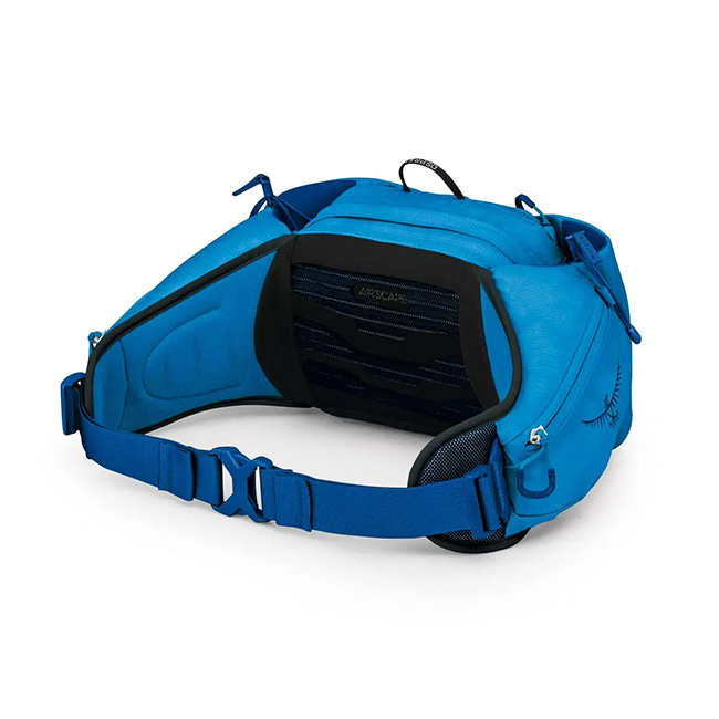 バックパネルとシームレスに一体化された、柔軟性のあるヒップベルトが腰を包み込み、アクティブな身体の動きに対応します。