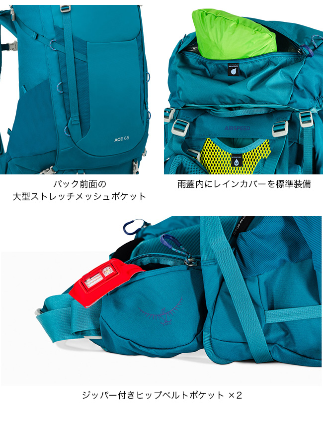エースは、登山&ハイキングのための機能をフル搭載した子ども向けテクニカルパックのシリーズ。