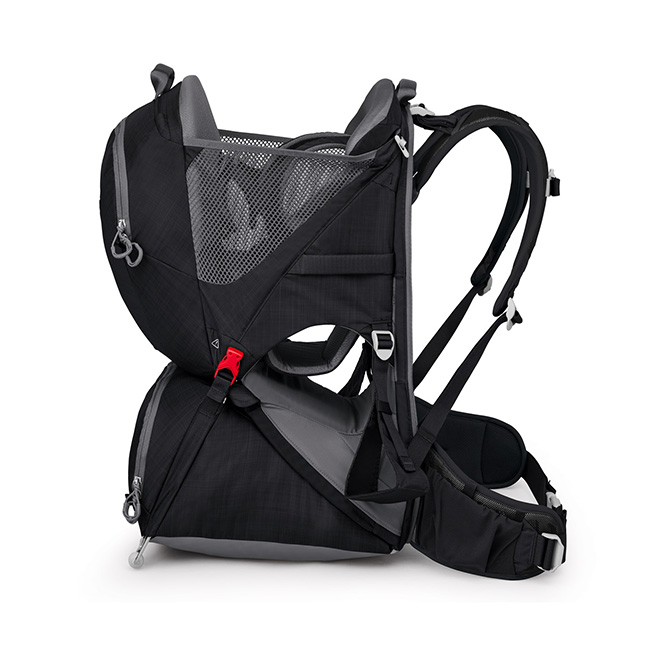 軽量ながら25リットルの収納スペースは着替えやオムツの収納に便利です。素早く簡単に調整できるショルダーハーネス、ヒップベルト、背面システムは、行動中に背負う人が変わっても快適に背負うことができます。
