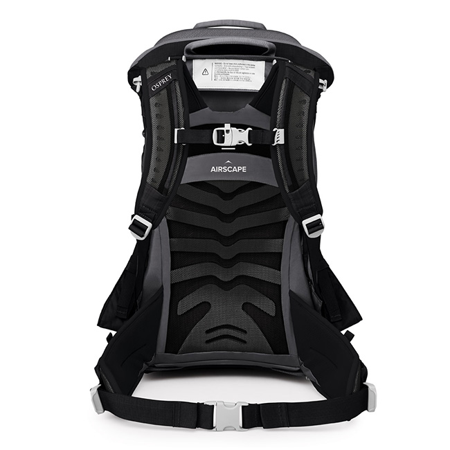 軽量フレームシートに凹凸のあるダイカットフォーム材を接着し、表面をメッシュでカバーした背面構造はエアスケープサスペンションと呼ばれ、安定したフィット感と通気性、背負った時の動きやすさをサポートしてくれます。