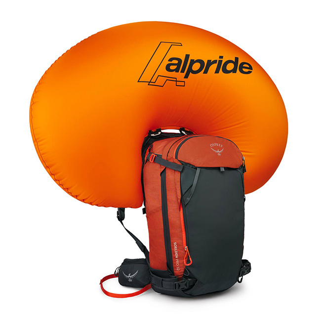 電子式雪崩エアバッグを搭載したバックカントリースキー/スノーボードパック。
