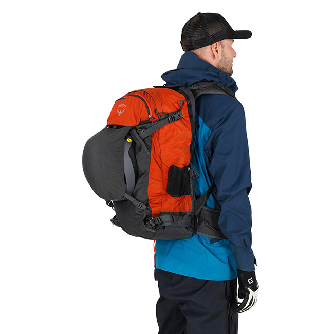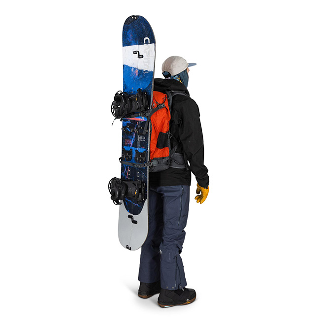 ヘルメットキャリーやスキー/スノーボードアタッチメントポイントなど、雪山に特化した機能を備えています。