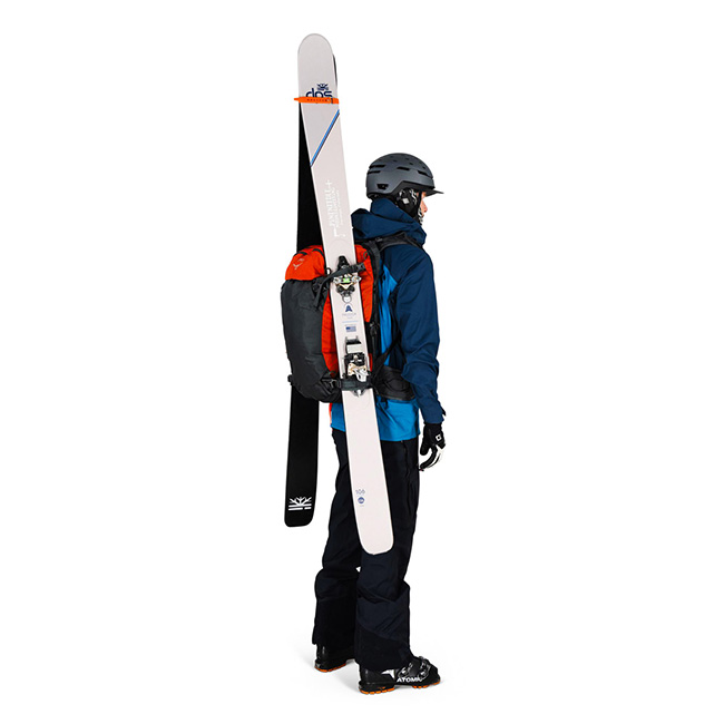 小型で軽量なAlprideE2システムはスーパーキャパシタ式のため、リチウムイオンバッテリー式とは異なり保管時のメンテナンスの必要がありません。スキーは斜め掛けやAフレームでも装着可能、もちろんスノーボードも装備可能。