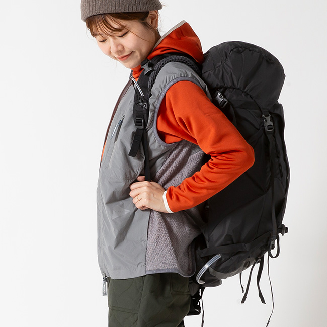 女性専用設計のショルダー/ヒップベルトを採用したモデル。