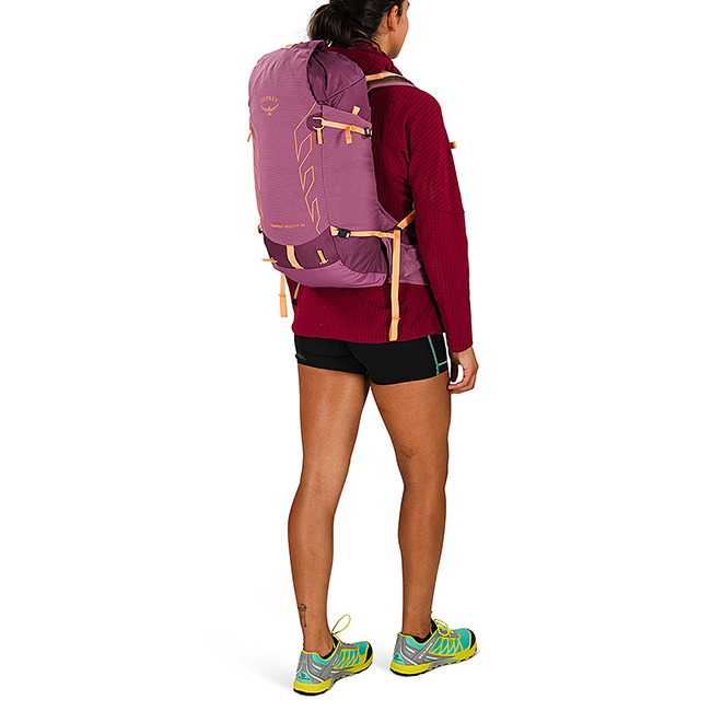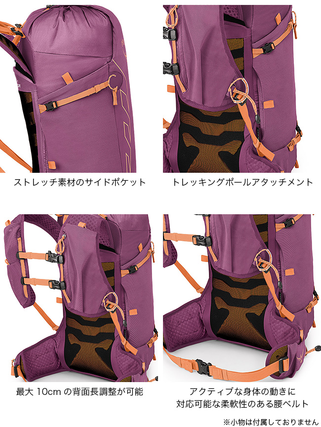 ヘルメットやアイスアックス、トレッキングポールなどが収納でき、ファストハイキングはもちろん長距離のトレイルランニングや自転車・スキーなど、スピードを重視する様々なアクティビティに対応します。