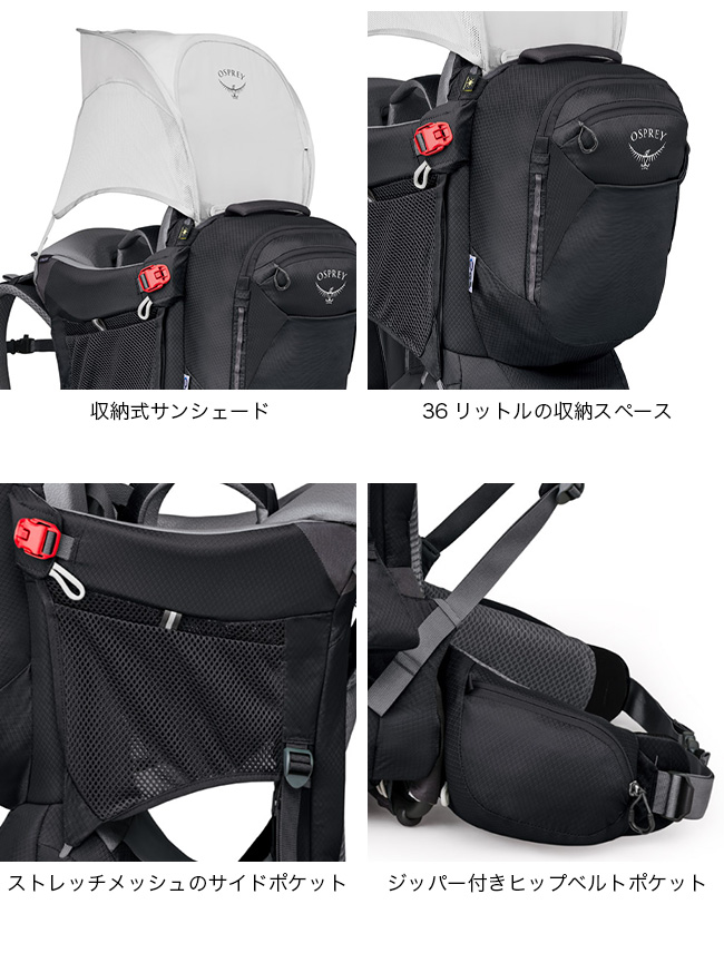 オスプレー ポコプレミアム OSPREY POCO PREMIUM OS50123 チャイルドシート 子供 おんぶ サンシェード 日除け リュック 収納 キャンプ アウトドア チャイルドキャリア