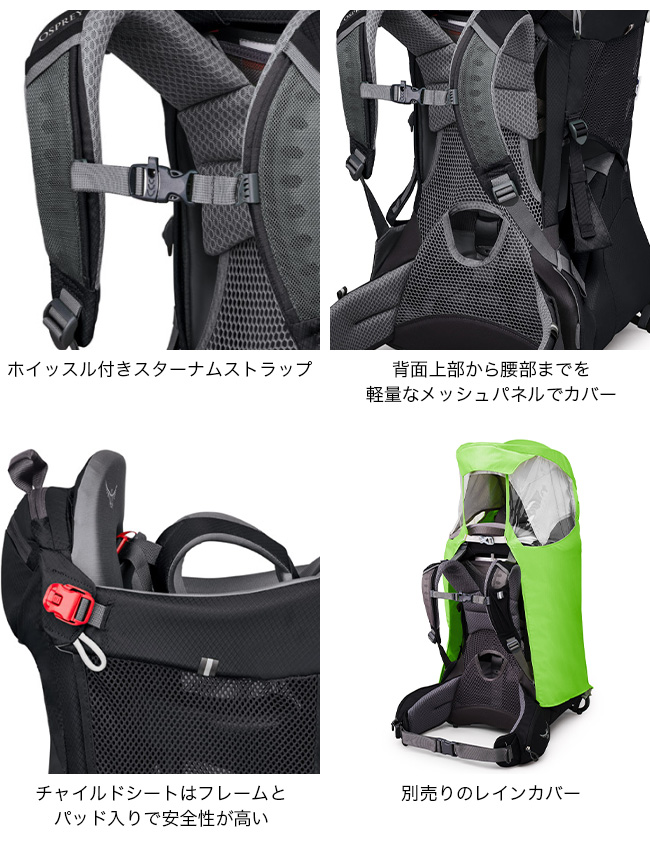 オスプレー ポコ OSPREY POCO OS50124 チャイルドシート 子供 おんぶ サンシェード 日除け リュック 収納 キャンプ アウトドア チャイルドキャリア