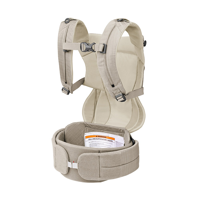 登山パックのようなショルダーベルトや幅広のヒップベルトが、しっかりとホールドして荷重を分散するので、長時間の抱っこでも快適な背負い心地です。
