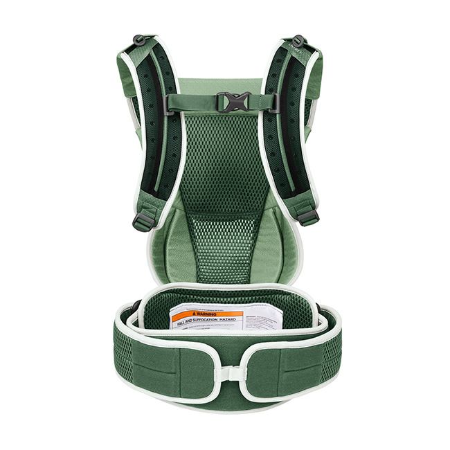 登山パックのようなショルダーベルトや幅広のヒップベルトが、しっかりとホールドして荷重を分散するので、長時間の抱っこでも快適な背負い心地です。