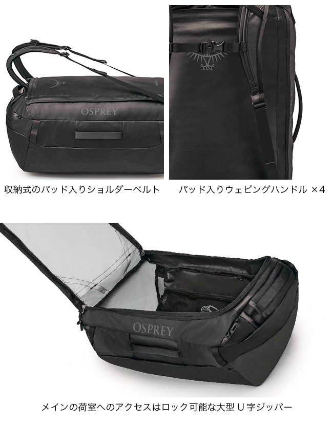 オスプレー トランスポーターダッフル 95 OSPREY メンズ レディース ユニセックス OS54946 バッグ ダッフルバッグ リュック バックパック トラベル 旅行 おしゃれ キャンプ アウトドア