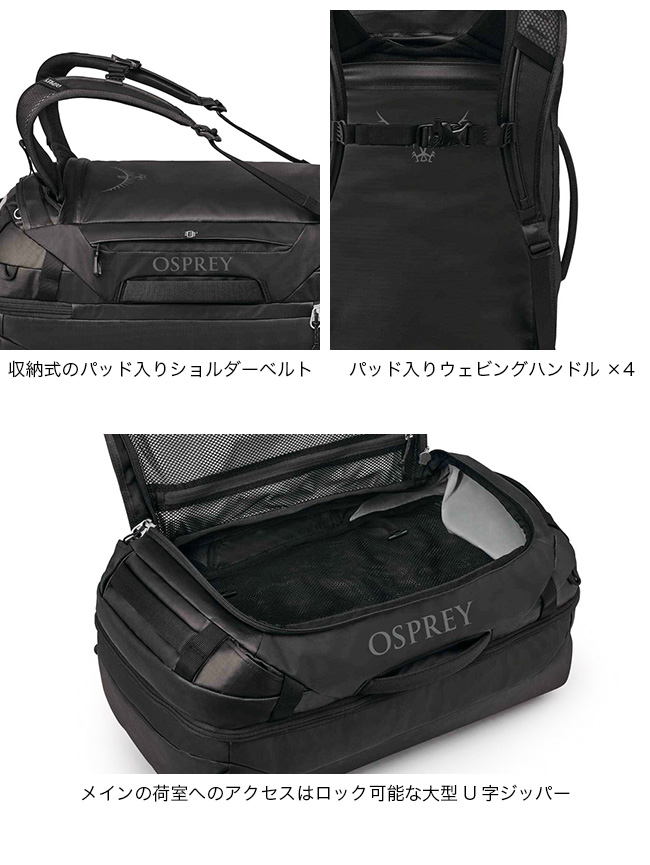 オスプレー トランスポータースカッフル 44 OSPREY メンズ レディース ユニセックス OS54952 バッグ ダッフルバッグ リュック バックパック トラベル 旅行 おしゃれ キャンプ アウトドア