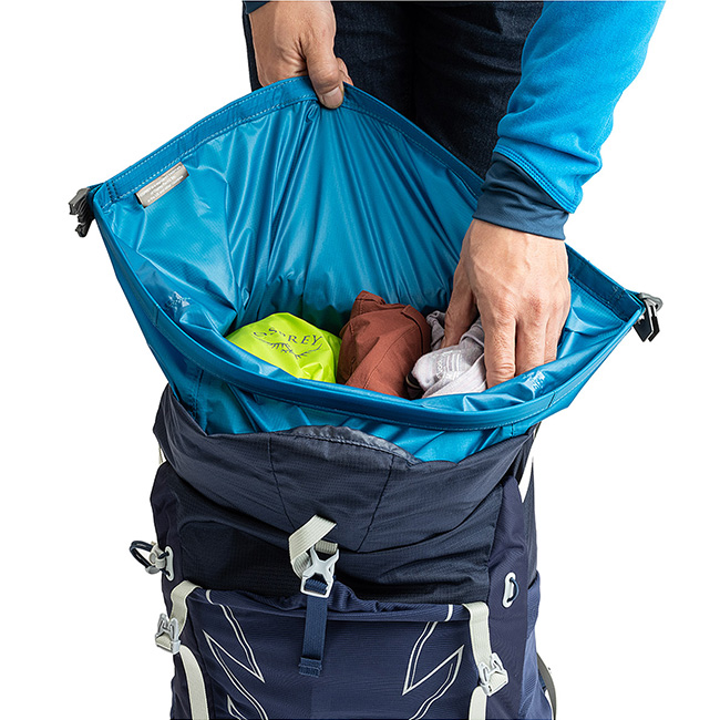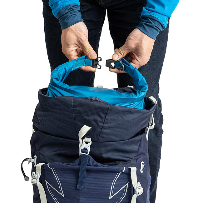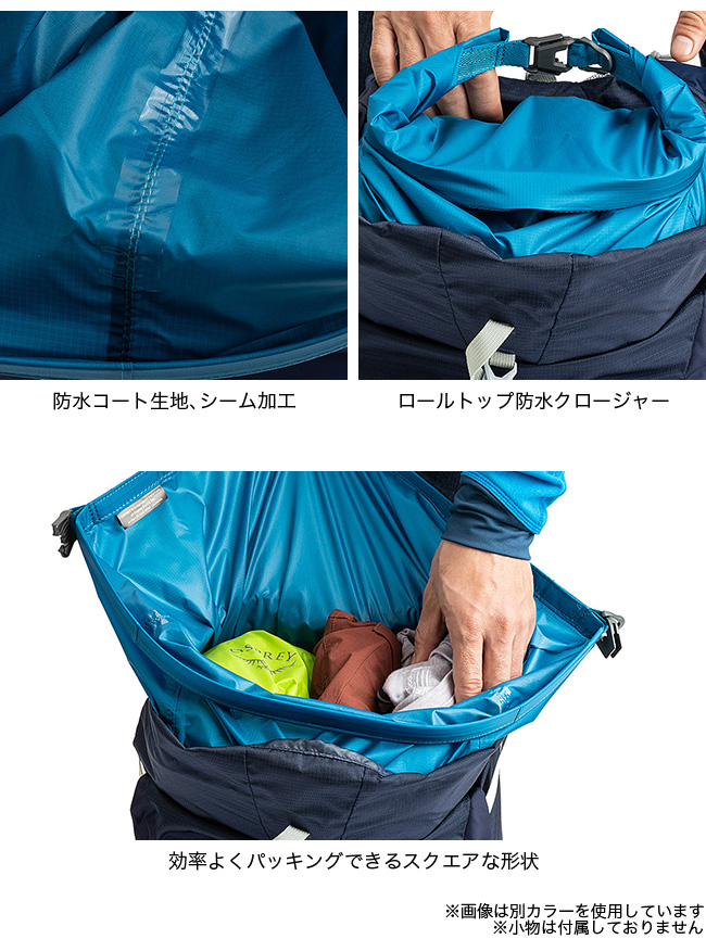 パックライナーはパックの内室と一体にフィットする形状で、耐水性と耐久性に優れ内部のギアを水や汚れから守ります。