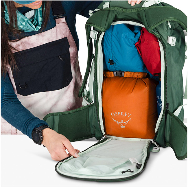 アバランチギアに素早くアクセスできる前面のJ型ジッパー