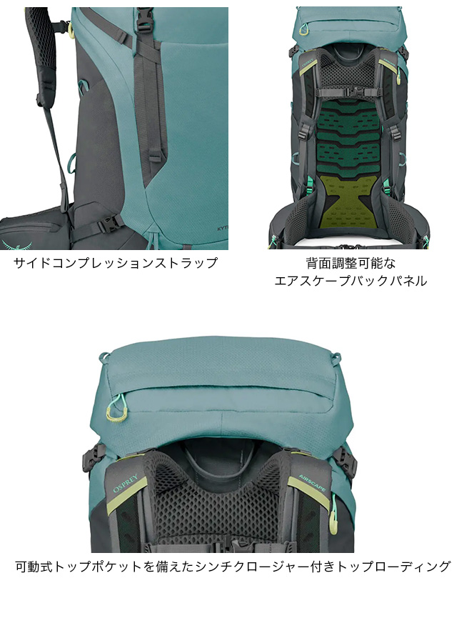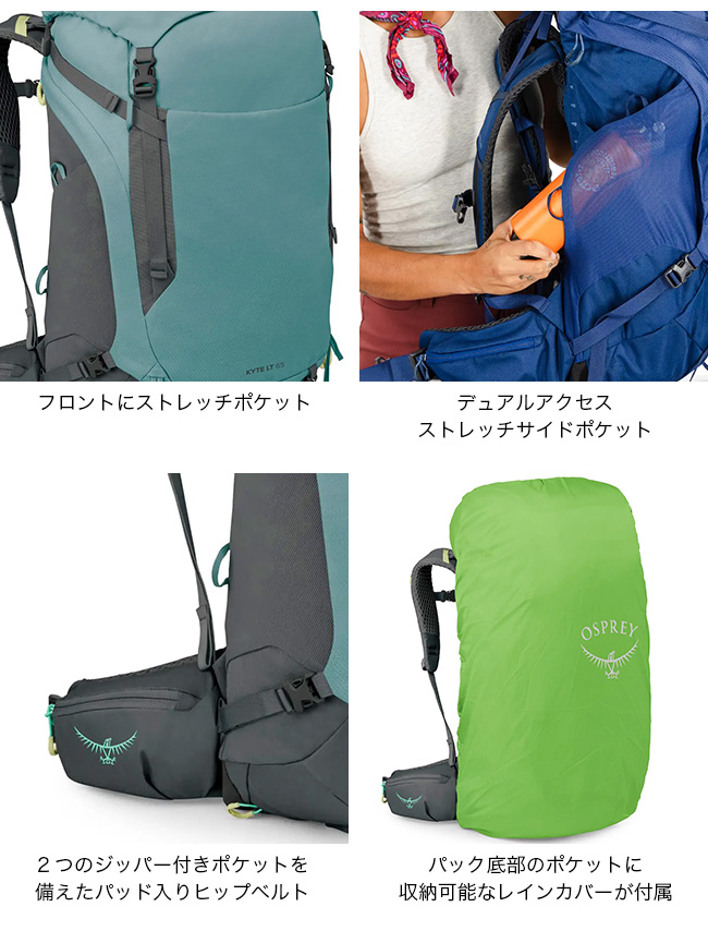 オスプレー カイト LT65 OSPREY レディース ウィメンズ OS50162 リュック バックパック ザック テクニカル 登山 おしゃれ キャンプ アウトドア
