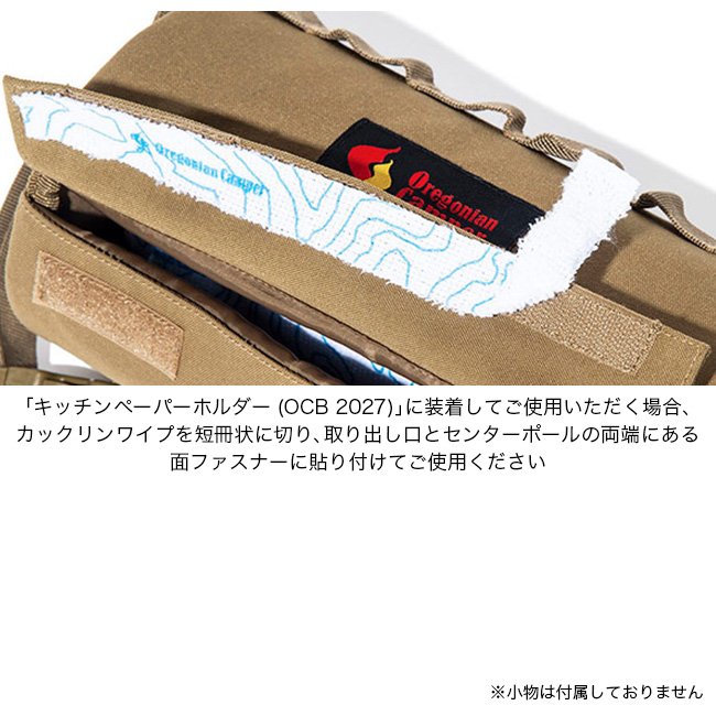 ※「キッチンペーパーホルダー(OCB 2027)」に装着してご使用いただく場合、カックリンワイプを短冊状に切り、取り出し口とセンターポールの両端にある面ファスナーに貼り付けてご使用ください。