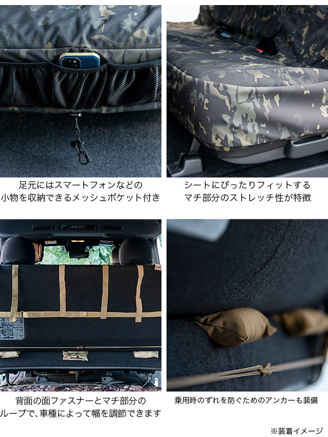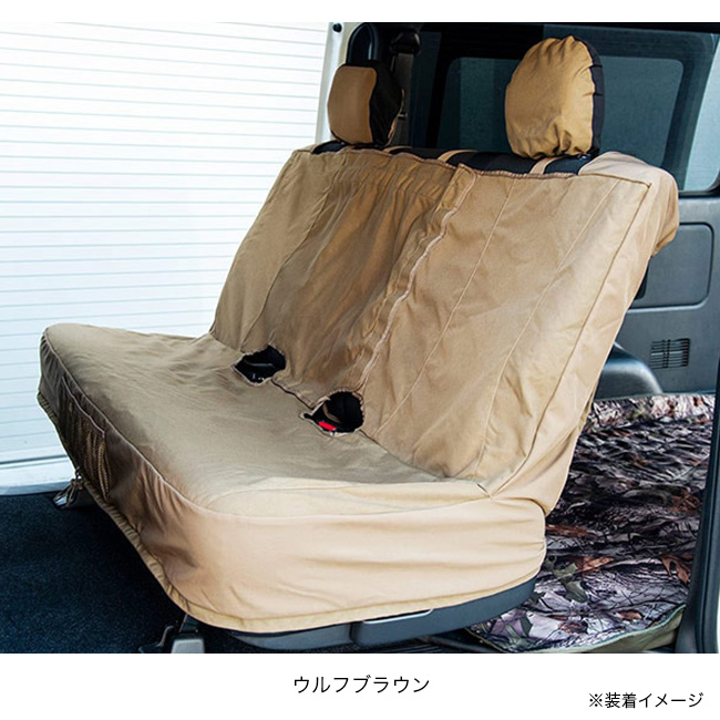 2:1分割シートのリアシートに対応しており、中央の面ファスナーで簡単に分割でき、ビークルシートジャケットを装着したまま、シートを半分倒す事ができます。