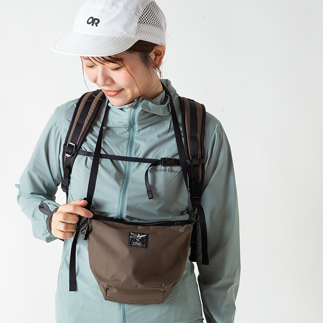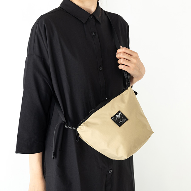 マチ幅120mmのサコッシュタイプのショルダーバッグ。防水性の高い3レイヤーの素材を使用、しっかりとアウトドア・アクティビティに対応しています。