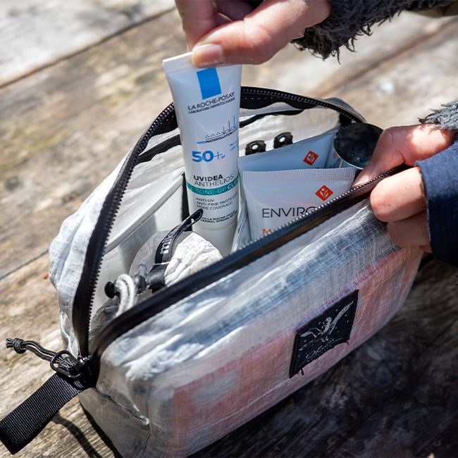 基礎化粧品からメイク用品までひとつにまとめられてパッキング時もすっきりまとめられる絶妙なサイズ感も魅力的。