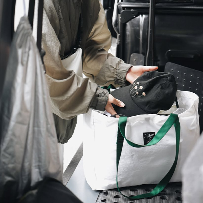 塩縮加工することにより生地の密度を上げ、強度と軽さを兼ね備えた独特の風合いがかわいいトートになりました。