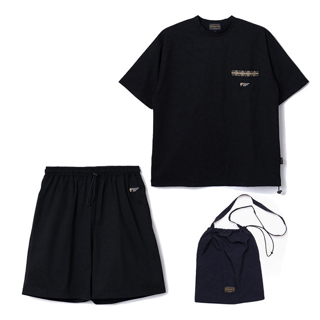 高い吸汗・速乾性を備えた軽量素材を採用し、ドライなタッチで快適な着用感。Tシャツの胸元とショーツの背面ポケットには、ペンドルトンならではの印象的なネイティブ柄があしらわれているのが特徴的です。