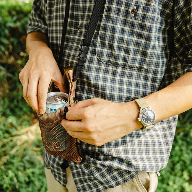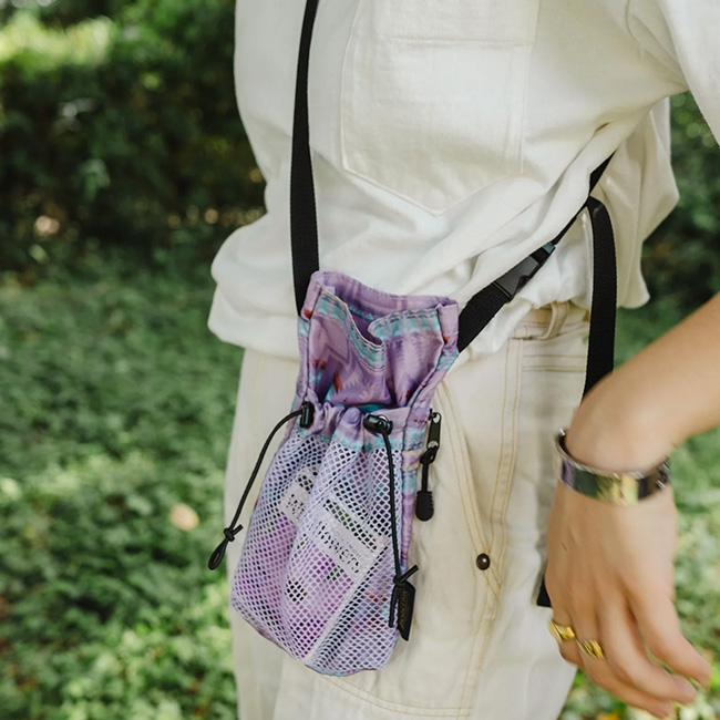 メッシュ素材のフロントポケットは、外からでも 入れた小物が確認でき ポケット口のストッパーを調整すれば ドリンクホルダーとしても利用できます!