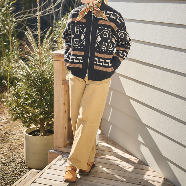 ざらつきのない滑らかな素材を用い、ざっくりと編み上げた厚手のニットは、着心地の良さはもちろん、見た目にも温もりを感じさせます。