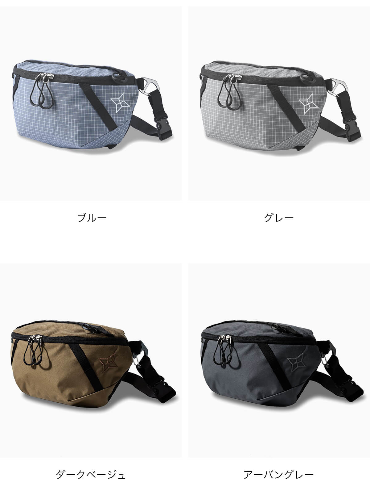 バッグ本体は縦でも横でも斜めでも使えるようにジッパー式を採用しており、徹底的に装備を想定したサイジングを行い、シンプルなフォルム。
