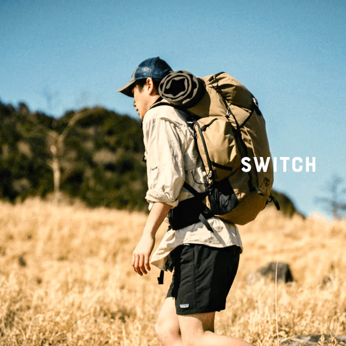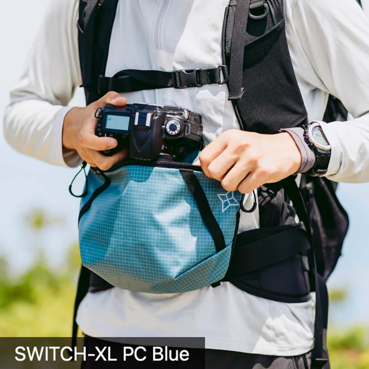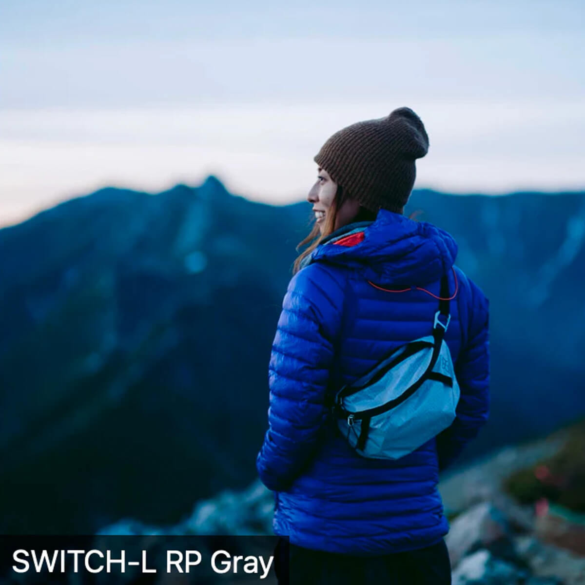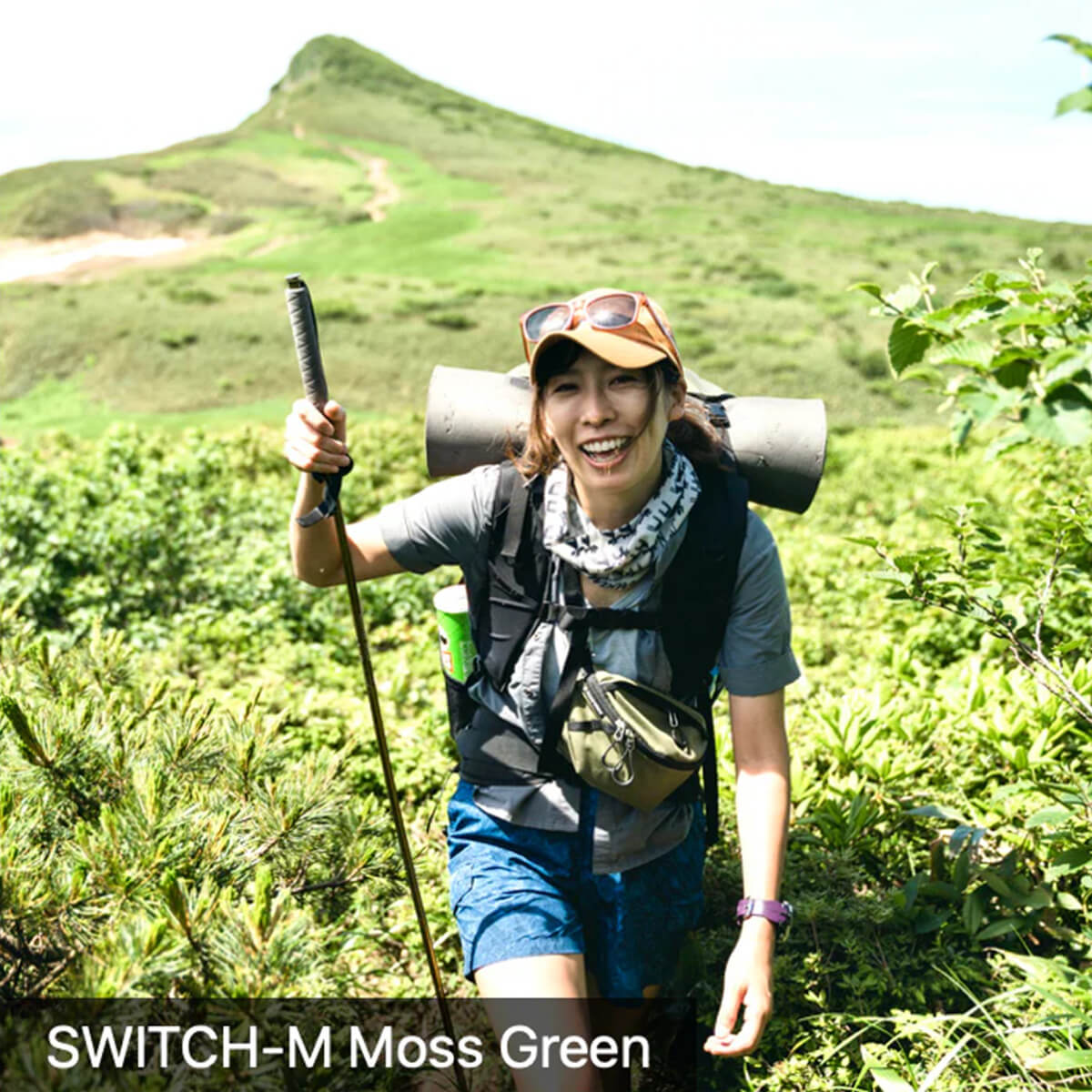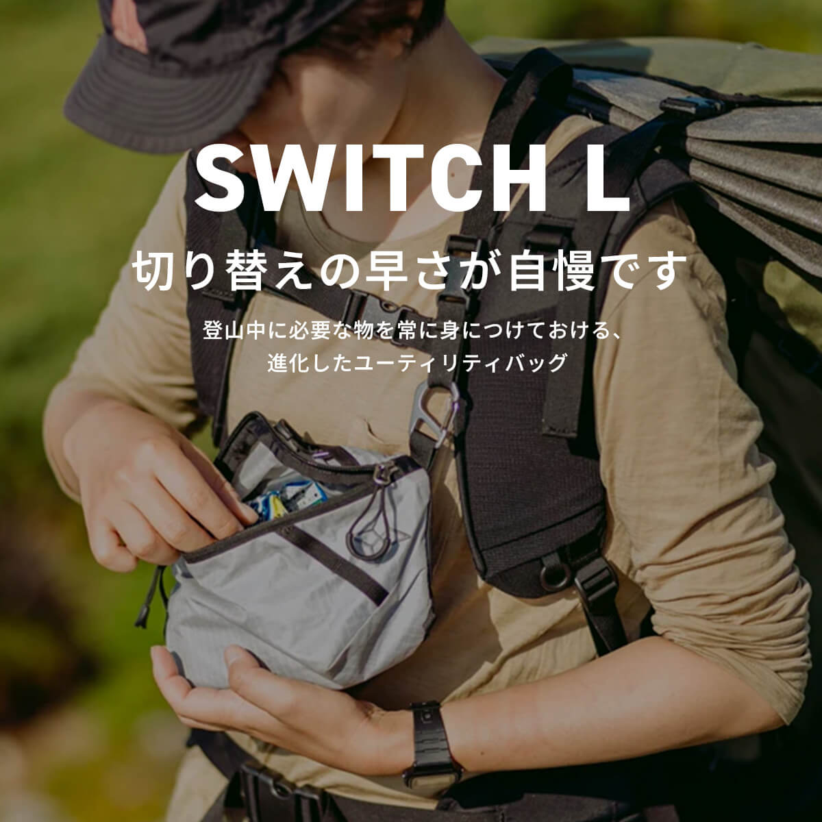 登山に寄り添うバッグとして開発されたのが、このSWITCHです。自慢のアルミフックは、グローブをしていても開閉しやすい大きな開口部と、どこにでも取り付けられる薄さが特徴です。