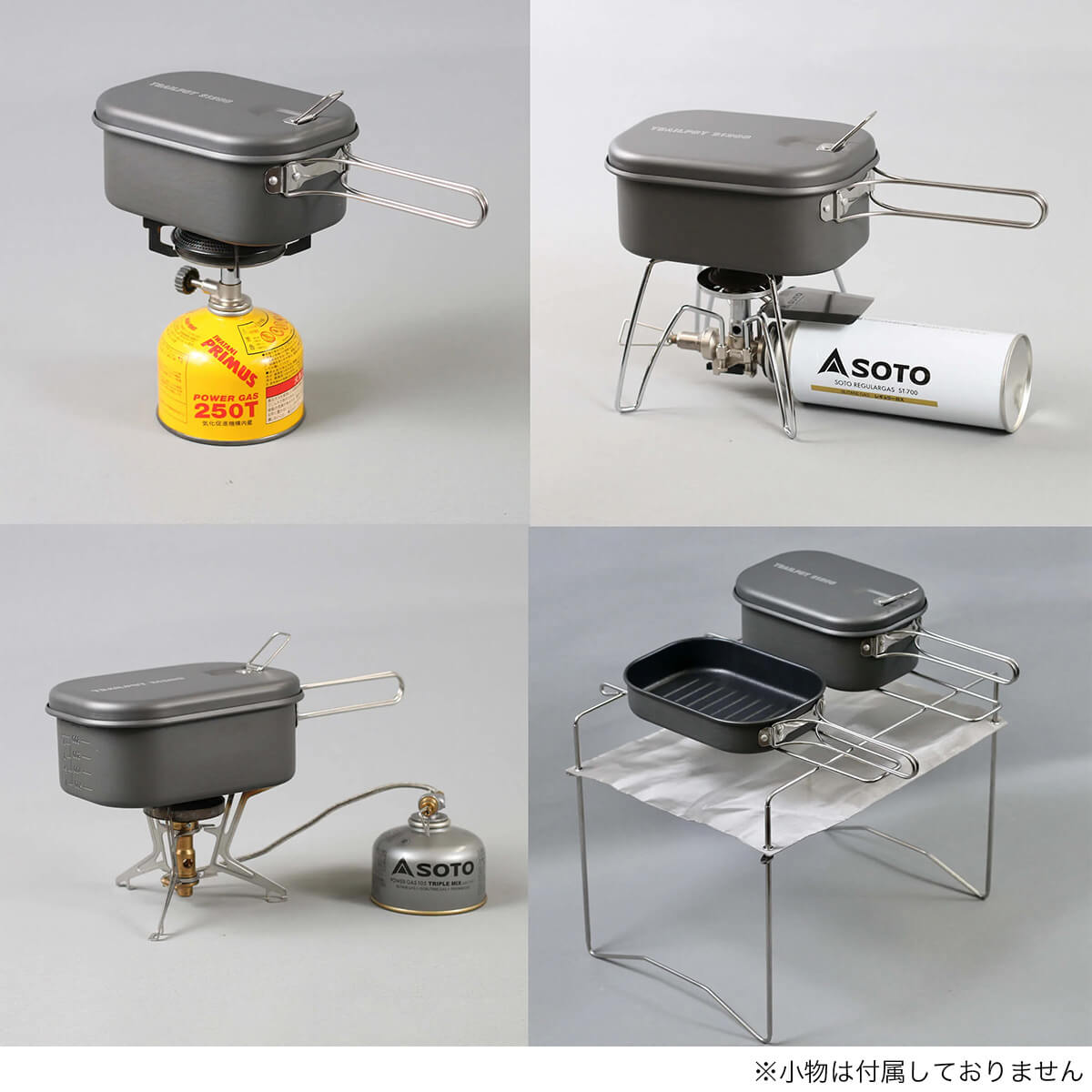 1人分のレトルト袋や袋麺などを無理なく湯煎や調理ができるサイズ感で、安定感のあるフォルムは焚き火でもバーナーでも安心して使えます。