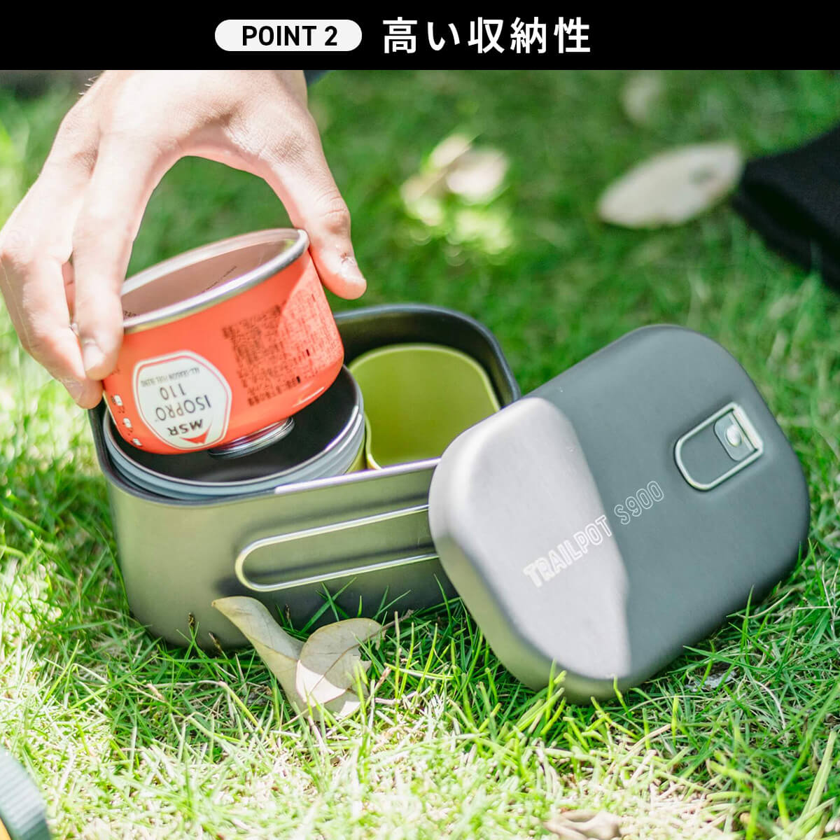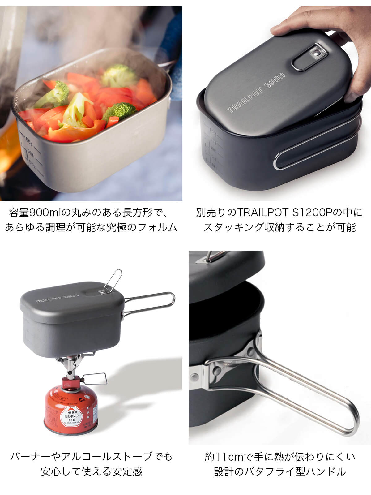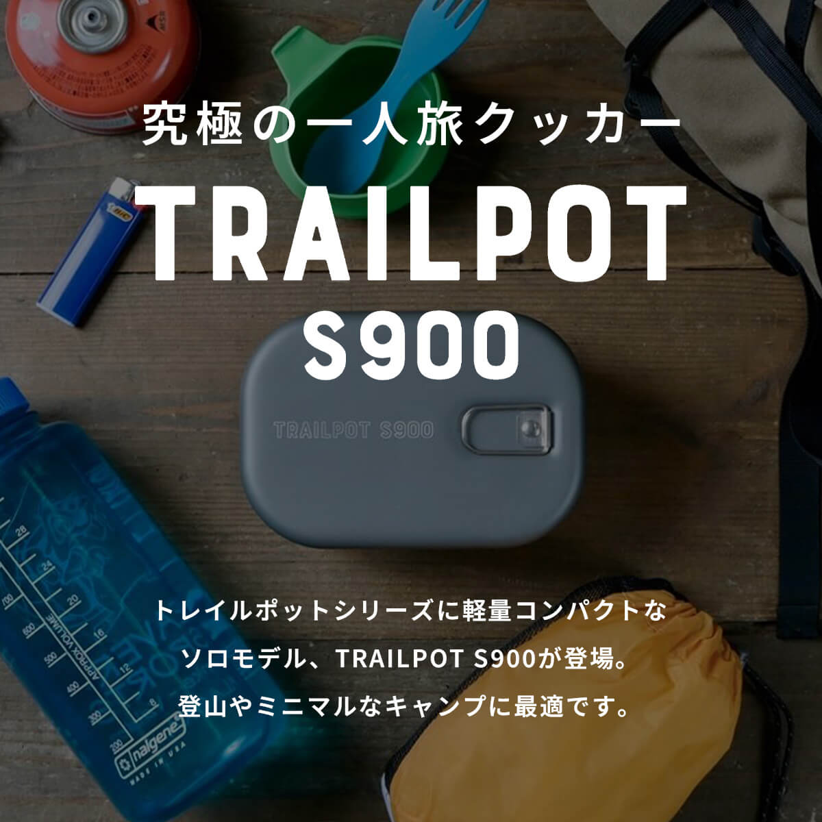 トレイルポットシリーズに軽量コンパクトなソロモデル、TRAILPOT S900が登場しました。TRAILPOT S900は、フィールドでの使いやすさを追求した角型アルミクッカーで、TRAILPOT S1200Pで好評の角型深底デザインを踏襲しました。