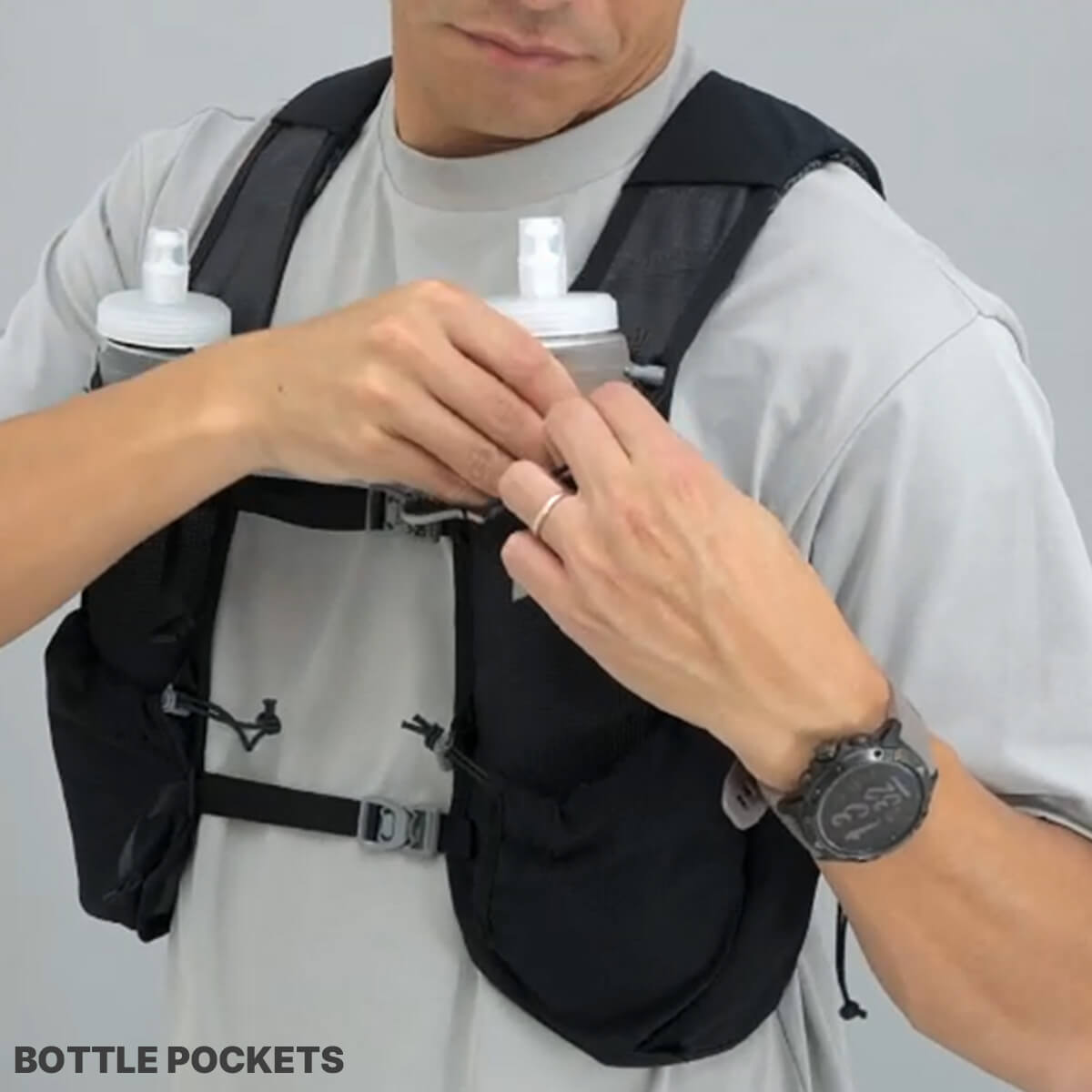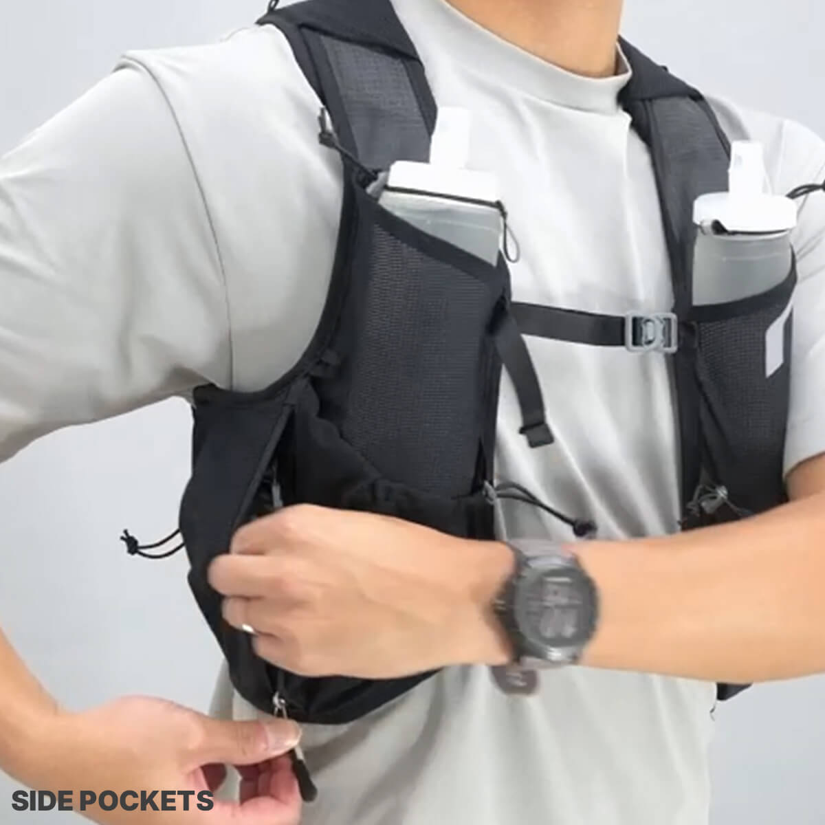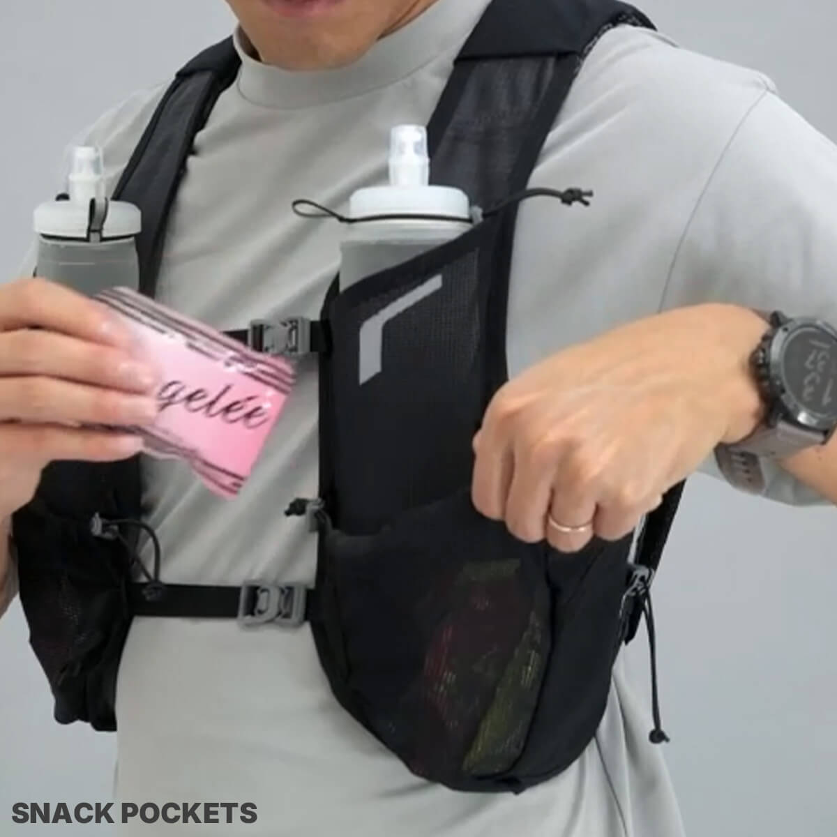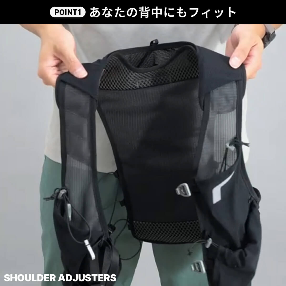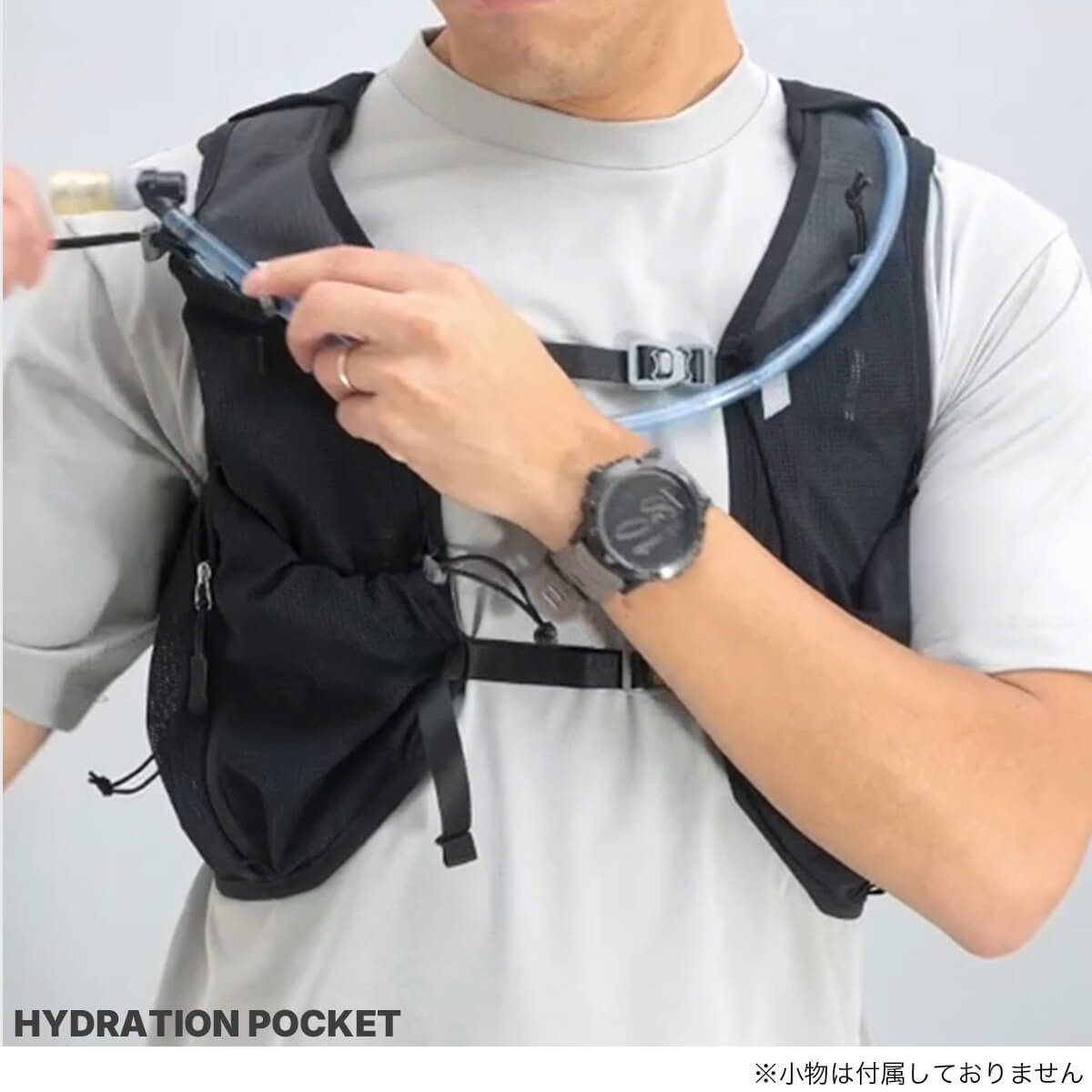 ランナーからの声をもとに、RUSHに最小容量のレーシングベストが登場。腕の可動を妨げない新設計と、激しい運動時でも熱がこもりにくい素材によって、スピードの出るショートレースに最適なモデルを開発しました。