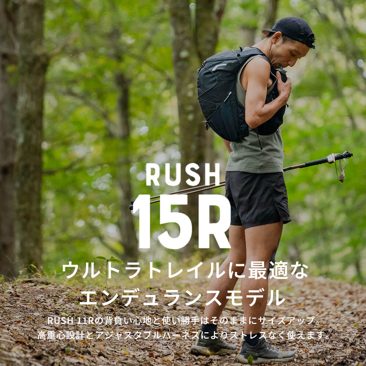 ユーザーから要望の多かった15Lモデルが登場。RUSH 11Rの背負い心地と使い勝手はそのままにサイズアップしました。