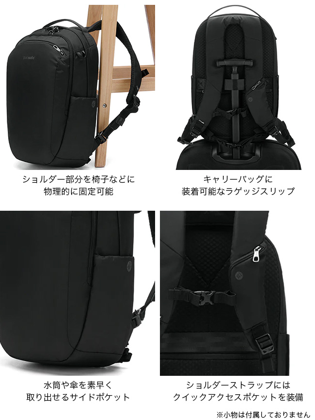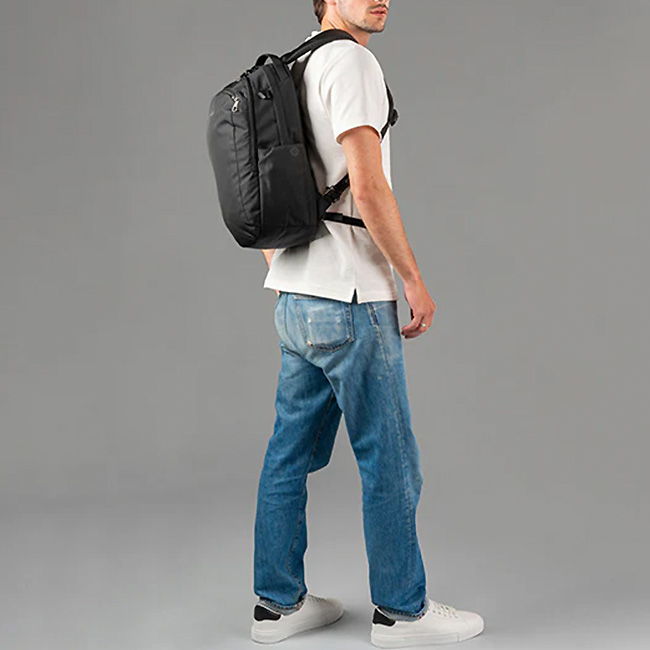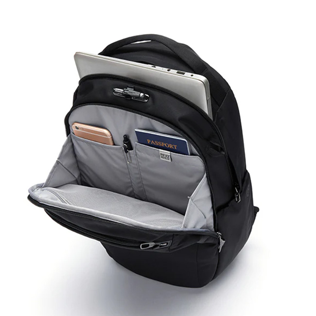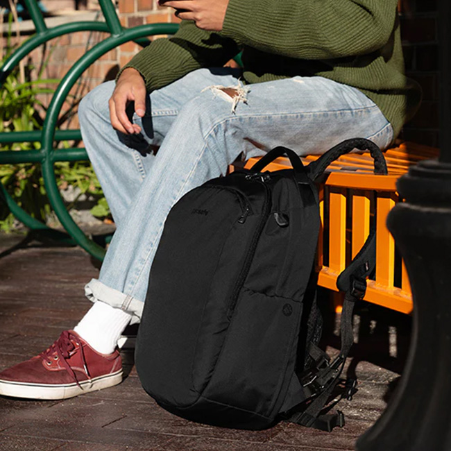 Pacsafe独自の盗難防止機能が搭載されたシンプルなデザインのバックパック