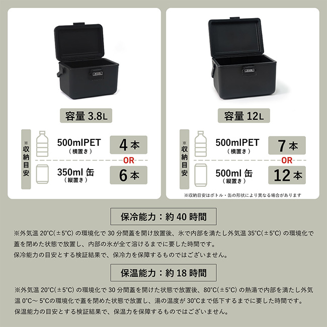 ・クーラーボックスは保冷、保温どちらの用途でもご使用頂けます。ただし冷たい物と熱い物を同時に入れないで下さい。