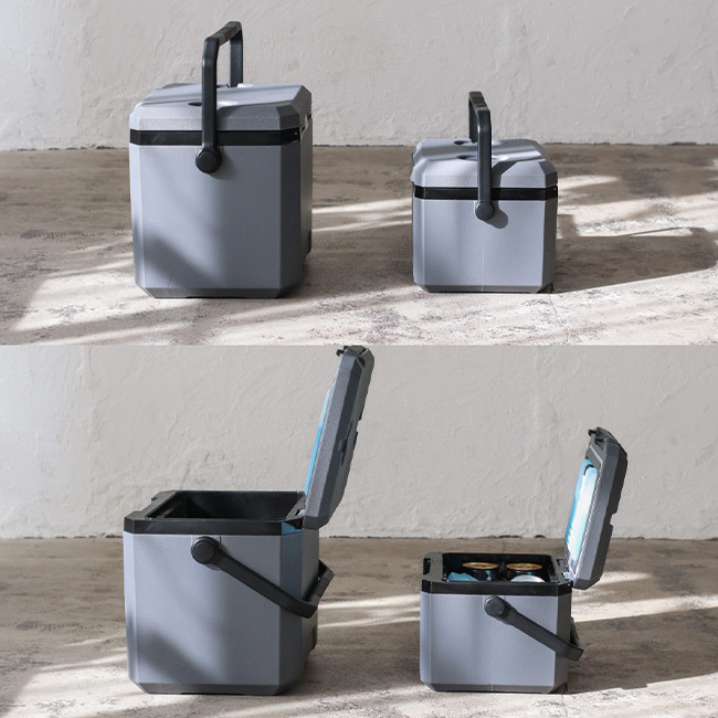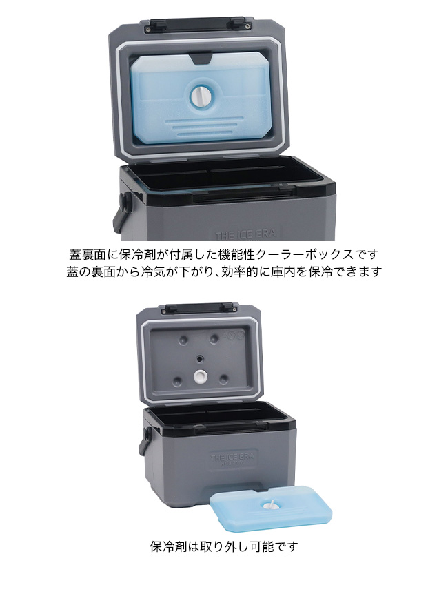 蓋裏面に取り外し可能な保冷剤が付属した機能性クーラーボックス。