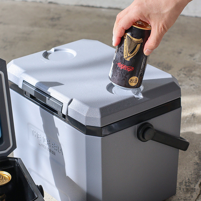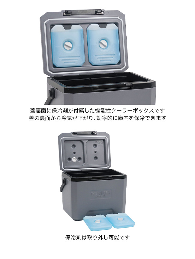 蓋裏面に取り外し可能な保冷剤が付属した機能性クーラーボックス。