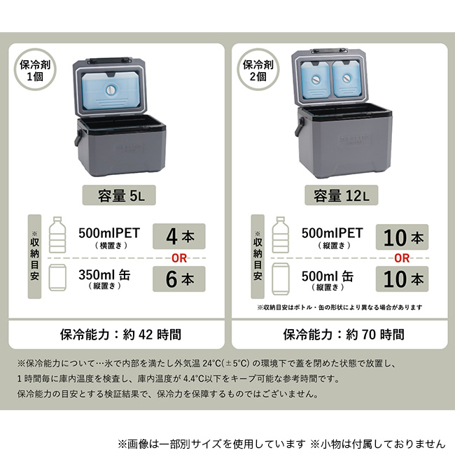 また、12Lサイズには別売りの「THE ICE ERA COLD ICE BRICK」に6缶セットした状態での収納が可能です。