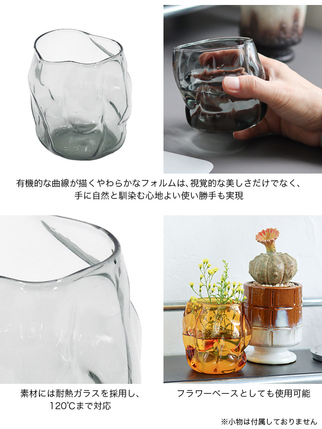 ロックグラスとしてはもちろん、フラワーベースとして空間を彩るインテリアアイテムとしても。