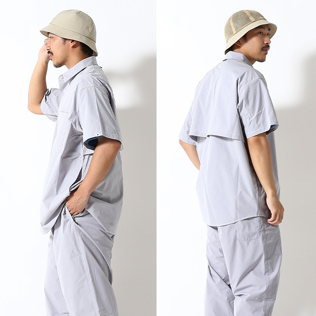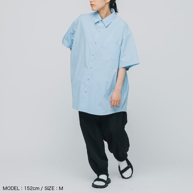 吸水速乾素材を採用した、レギュラーカラーの半袖ビッグシャツ