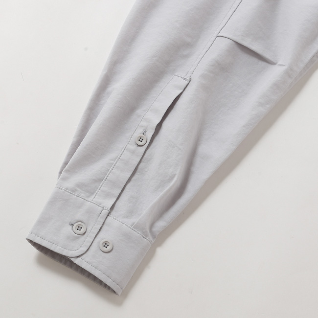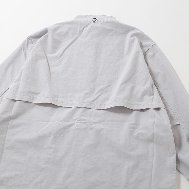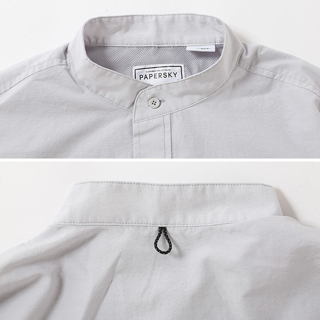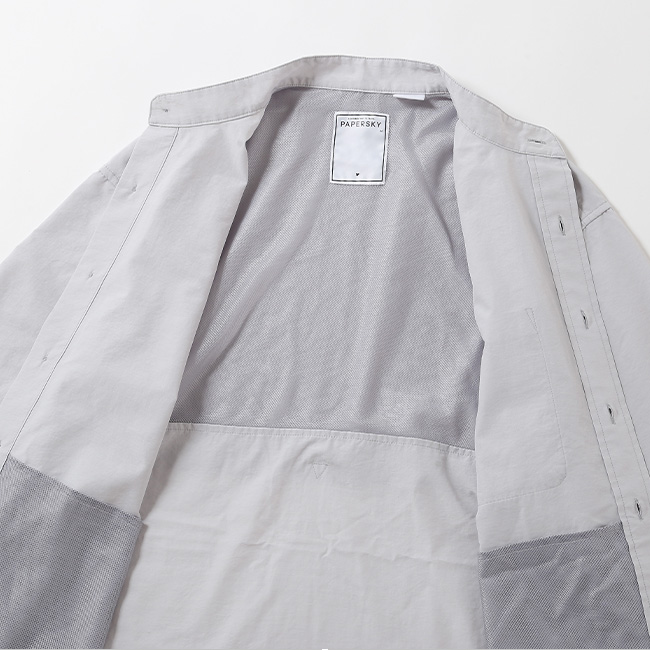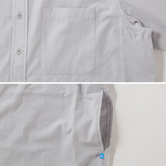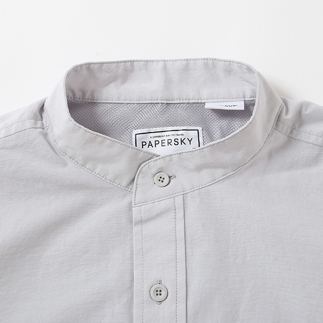 吸水速乾素材を採用した、ノーカラーのロングビッグシャツ
