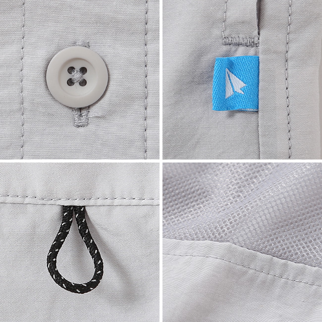 左胸にはクライミングマップやサングラスを収納できるようループ付きの大き目のポケットを配置、また、活動中に鍵や小物が落ちないよう止めることができるループを左腰ポケット内に付けました。
